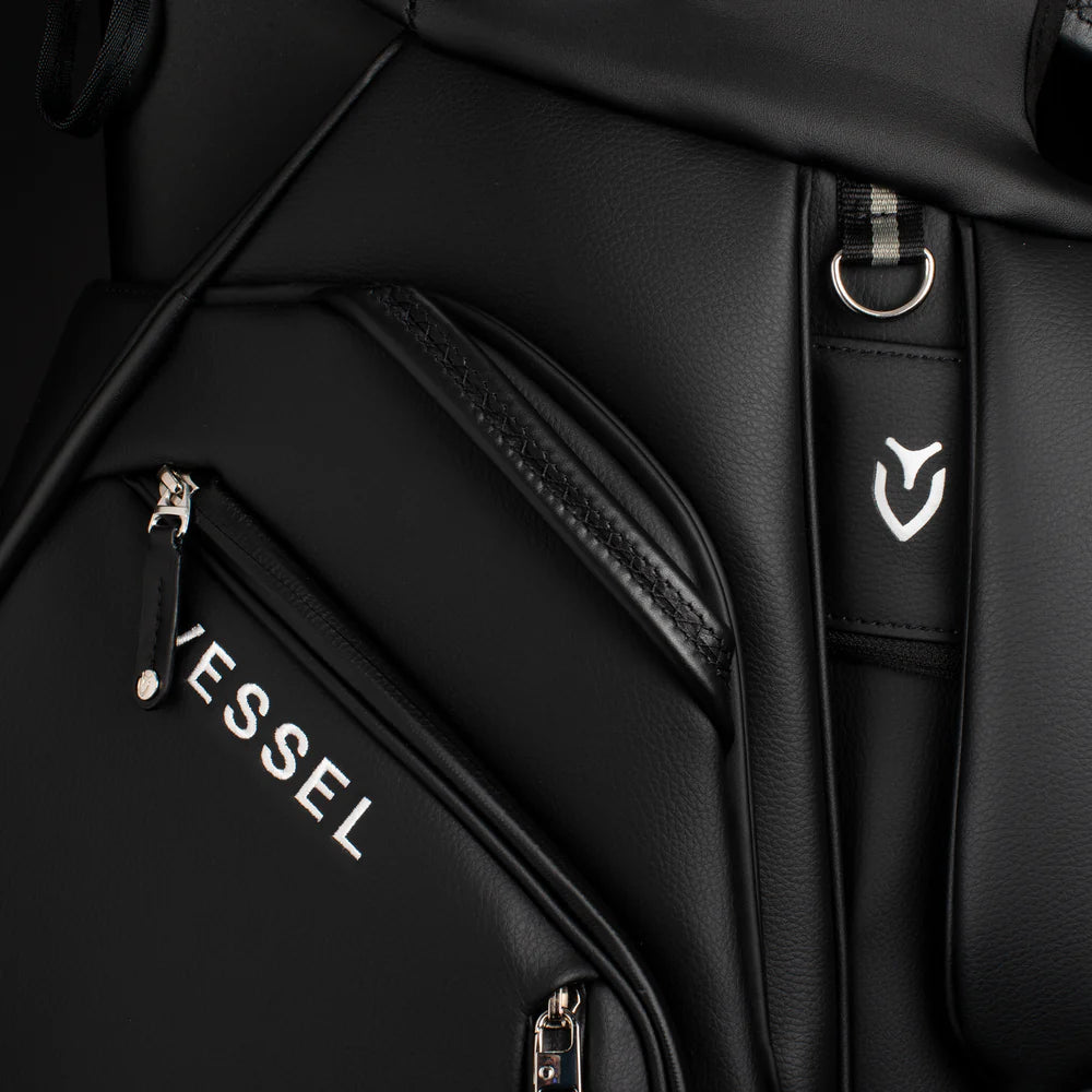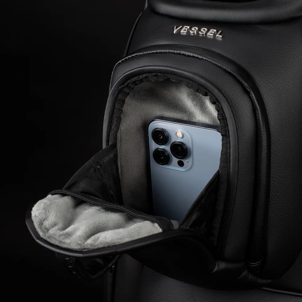Engineered for golfers who ride, the Lux Pro Cart II is designed with a strap pass-through and an upper magnetic pocket pod to keep essentials accessible while secured to a cart or trolley. Forward-facing and dual side pockets maximize convenience, while your choice of a 15-way or 7-way top ensures uncompromising organization. A reinforced base and cart bracket straps provide stability across any terrain. Crafted for lasting luxury with smooth-grain leather at every touchpoint, the Lux Pro Cart II delivers maximum storage without the bulk – bringing VESSEL’s signature craftsmanship to every detail.