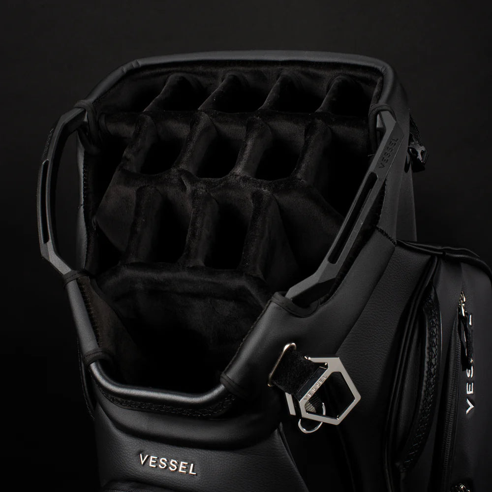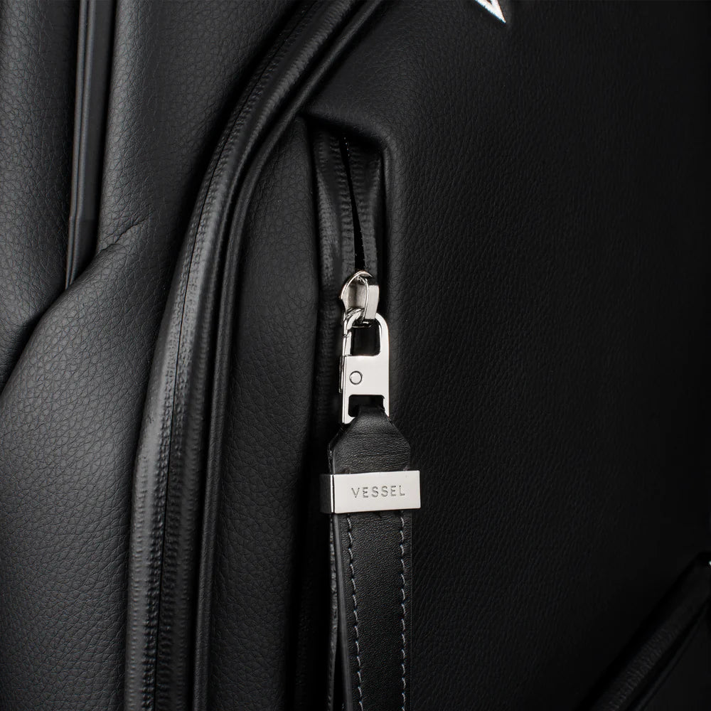 Engineered for golfers who ride, the Lux Pro Cart II is designed with a strap pass-through and an upper magnetic pocket pod to keep essentials accessible while secured to a cart or trolley. Forward-facing and dual side pockets maximize convenience, while a 15-way top ensures uncompromising organization. A reinforced base and cart bracket straps provide stability across any terrain. Crafted for lasting luxury with smooth-grain leather at every touchpoint, the Lux Pro Cart II delivers maximum storage without the bulk – bringing VESSEL’s signature craftsmanship to every detail.
